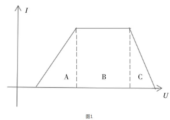 從大方向來(lái)考慮,交流充電樁與直流充電機(jī)的檢定有諸多相通之處,但充電樁在檢定和使用中都要注意恒功率區(qū)域問(wèn)題。如圖1所示,A、C區(qū)域?yàn)榈碗娏髑闆r,充電效率低,容易炸機(jī);B區(qū)域?yàn)楹愎β蕝^(qū)域,適合檢定。